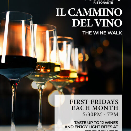 Ferraro’s Ristorante invites you to our monthly First Friday “Il Cammino del Vino” wine mixer, featuring tastings of up to 12 wines, light bites, and expert guidance from our Sommeliers.
